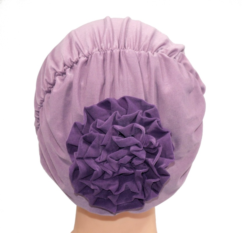 Bonnet assorti d'une bande et d'une jolie fleur - Couleur mauve