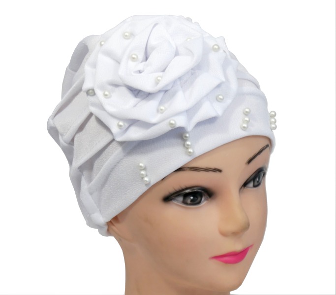 Bonnet perle avec une large fleur sur le cote de couleur blanc