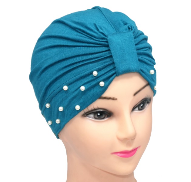 Bonnet égyptien perlé de couleur bleu paon - REF. 28407 (3.90 €)