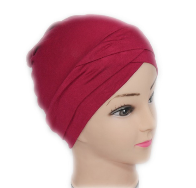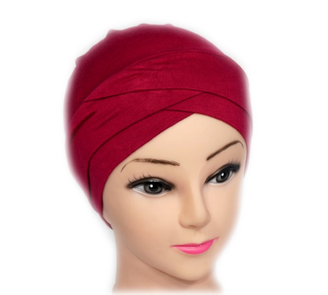 Turban bonnet croisé bicolore femme moderne - Couleur Rouge bardeaux et Noir - REF. 40000 (3.90 €)