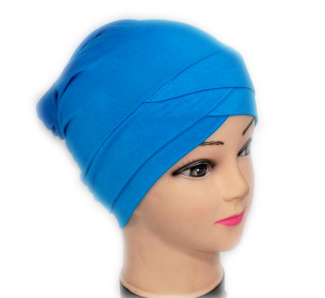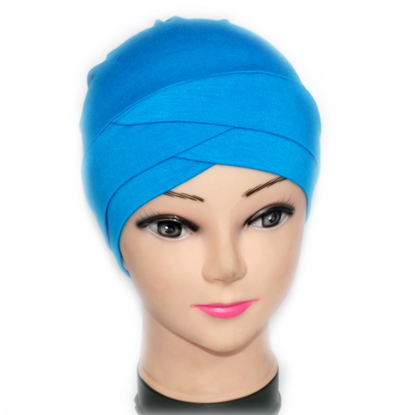 Bonnet de couleur unie avec forme croisée sur le devant.