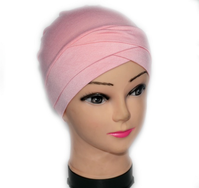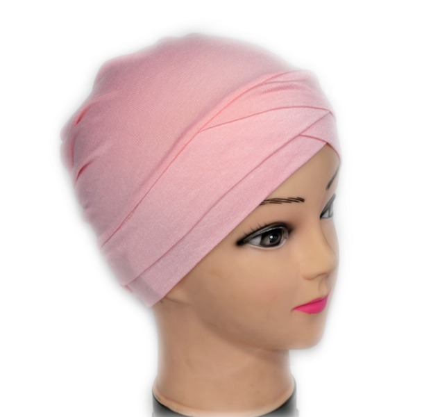 Bonnet de couleur unie avec forme croisée sur le devant.