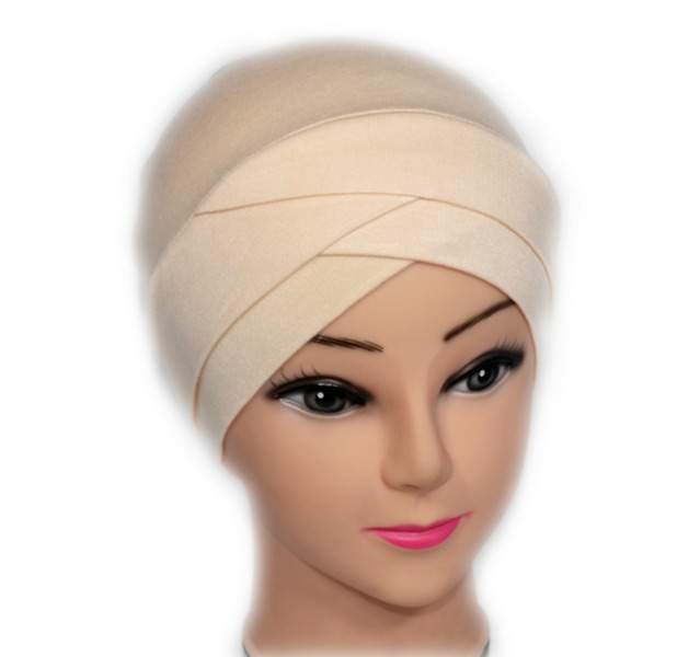 Bonnet croise de couleur Beige clair unie