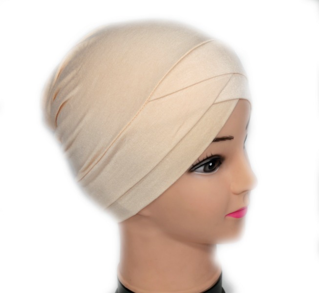 Bonnet croisé de couleur Beige clair unie Vetement & Accessoire