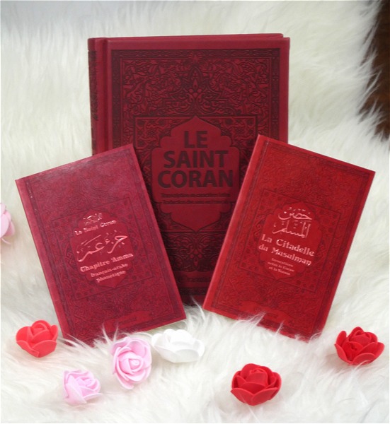 Pack Cadeau Bordeaux (3 livres en francais-arabe-phonetique) : Le Saint Coran, Chapitre Amma, La Citadelle du musulman
