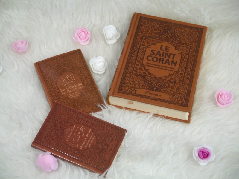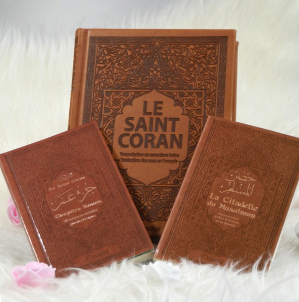 Joli pack cadeau de couleur marron assorti avec les trois livres suivants (tous en français/arabe/phonétique) :