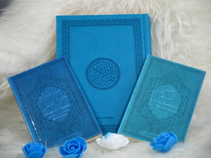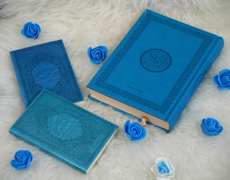 Pack Cadeau "pas cher" couleur bleu turquoise avec 3 livres : Le Saint Coran, Chapitre Amma et La Citadelle du Musulman Deco & Cadeau