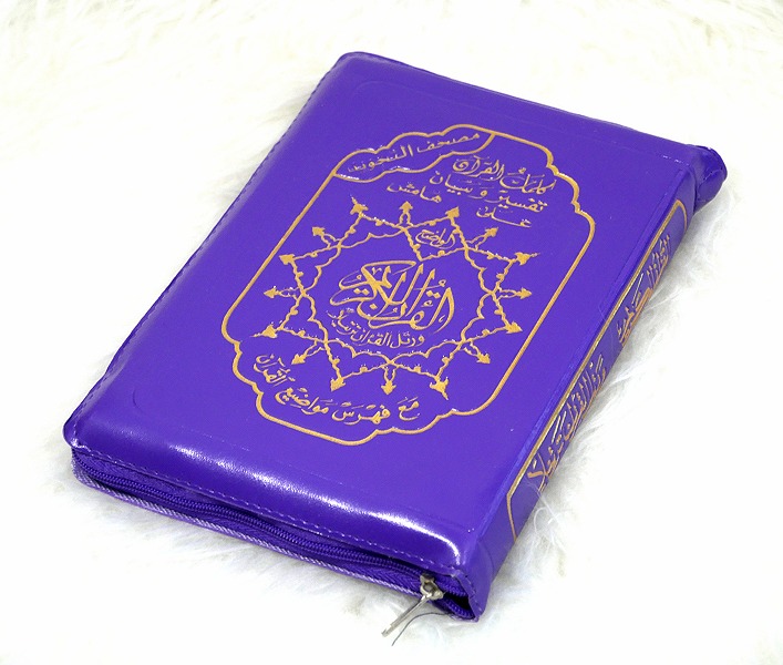 Le Saint Coran en langue arabe avec fermeture Zip (Format 14x20cm) - Couleur Mauve - REF. 28198 (12.00 €)