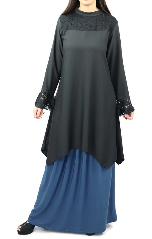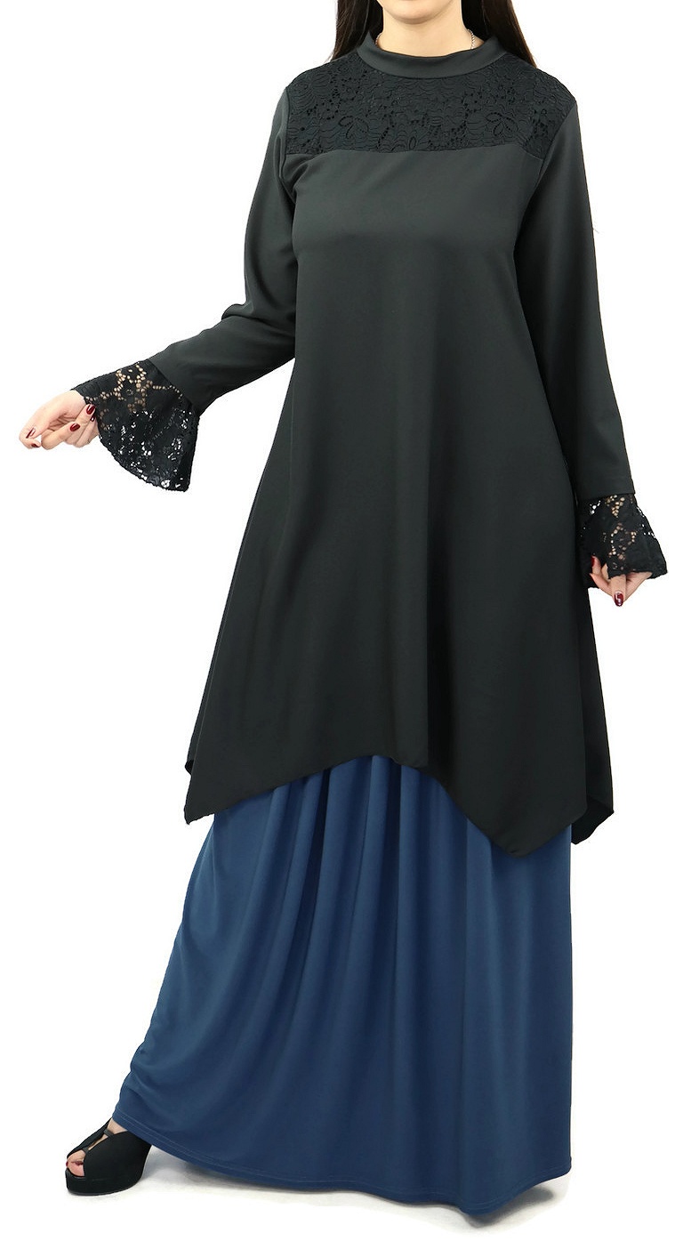 Tunique ample de couleur noire avec dentelles noires Vetement & Accessoire