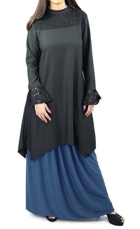Robe - Tunique longue pour femme (Casual Hijab Outfit) - Couleur anthracite - REF. 35453 (28.00 €)