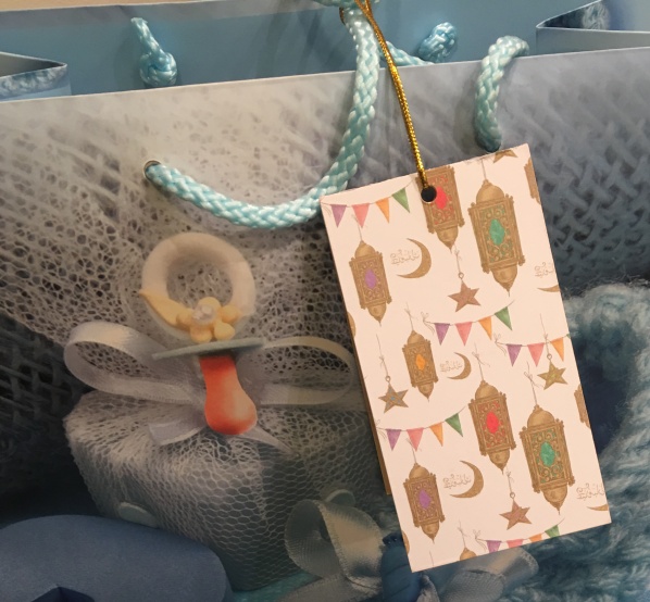Très pratique cette mini-carte de voeux pliée en deux pour accompagner votre cadeau de l'Aïd, elle vous permet d'y inscrire à l'intérieur un message d’accompagnement de votre cadeau. Elle peut être suspendue (car déjà perforée) ou scotchée à votre pack cadeau ou insérée à l'intérieur.