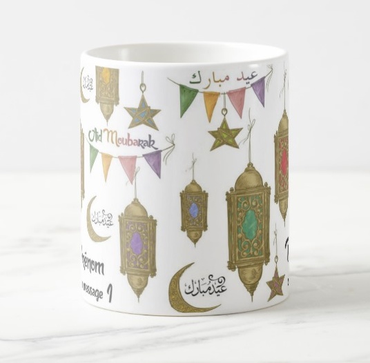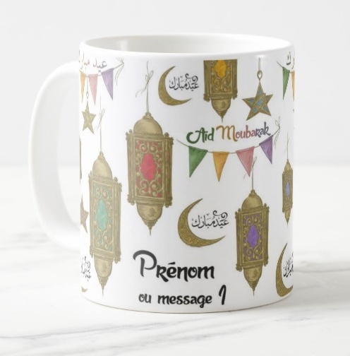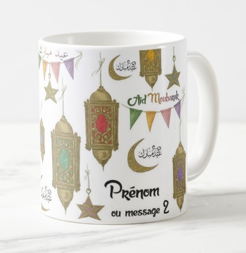 Recevez ce mug original pour la fête de l'Aïd, personnalisé à votre guise avec la possibilité d'y inscrire deux messages (ou prénoms)... Avec comme thème la fête de l'Aïd