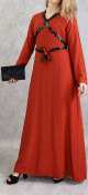 Veste avec ceinture (Vetement Hijab - Boutique en ligne France) - Couleur brique - REF. 35396 (19.90 €)