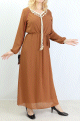 Robe maxi-longue avec broderies et strass - Couleur Camel - REF. 31755 (28.00 €)
