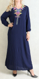 Robe fluide d'été à manches longues avec broderies multicolore -Couleur Bleu marine - REF. 32390 (19.90 €)