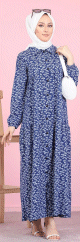 Robe longue boutonnée ample imprimée Nénuphar (Robes Hijab pour femme voilée) - Couleur Bleu marine - REF. 32522 (24.90 €) - En Promotion à 19.90 €