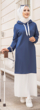 Robe longue à capuche jupe plissée intégrée (Vetement mastour pour femme musulmane) - Couleur bleu pétrole et blanc - REF. 33987 (28.00 €)