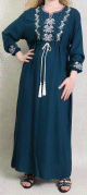 Robe longue brodée avec un lien à la taille pour femme - Couleur Bleu pétrole - REF. 36145 (24.90 €)