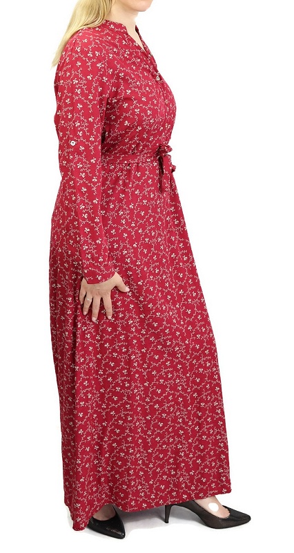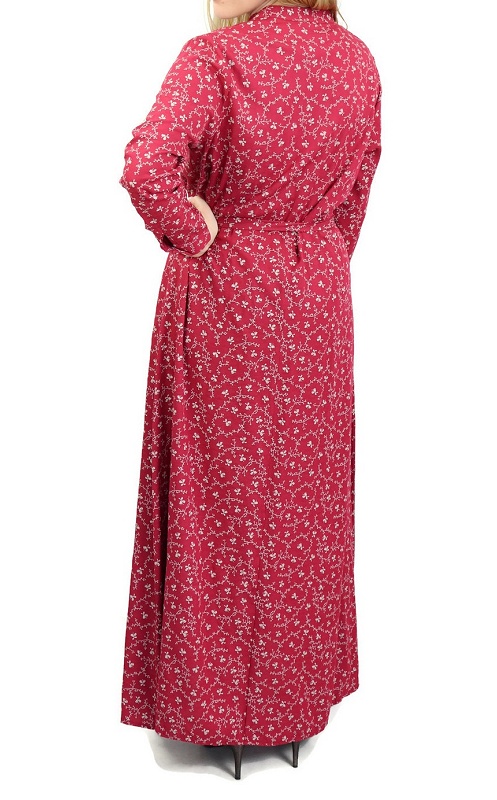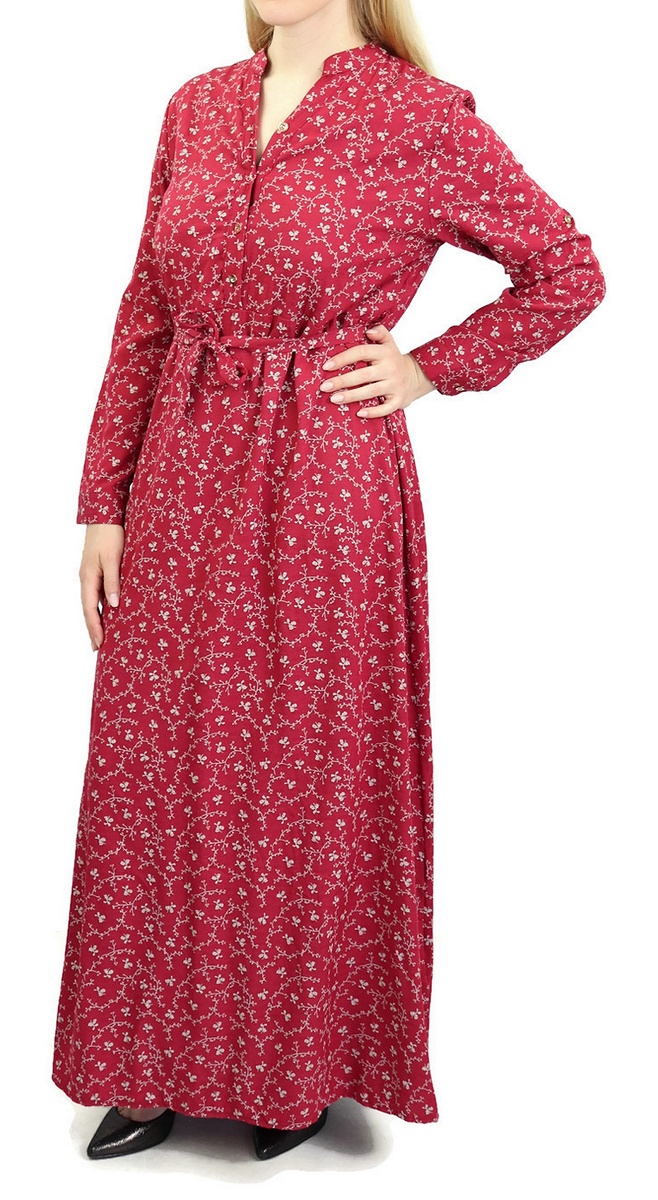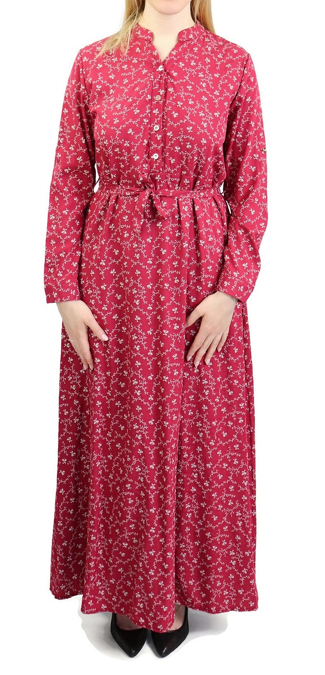 Robe longue quatre saisons avec manches longues retroussées - Couleur Bordeaux à motifs fleuris gris clairs Vetement & Accessoire