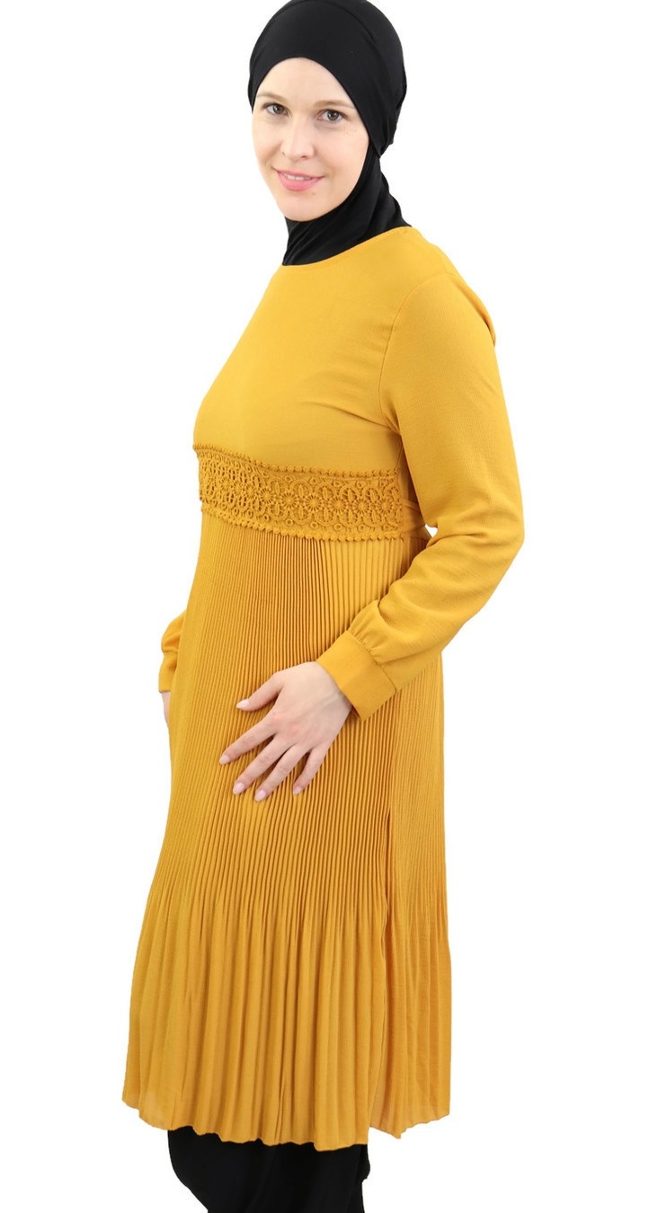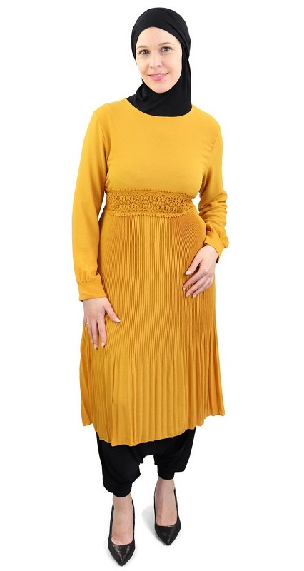 Tunique évasée plissée - Couleur jaune moutarde Vetement & Accessoire