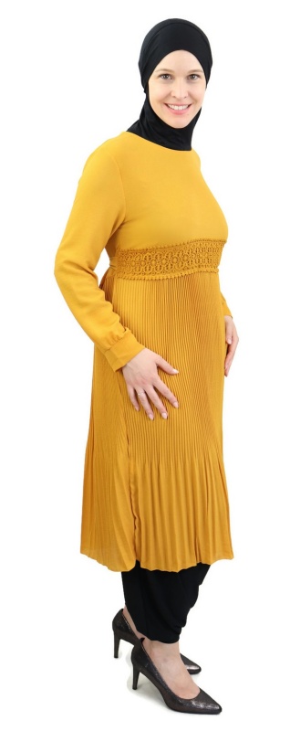 Tunique evasee plissee - Couleur jaune moutarde