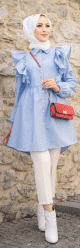 Tunique-chemise à volants ample pour femme (Vêtement pour Hijab) - Couleur des rayures bleu et blanc - REF. 35194 (24.90 €)