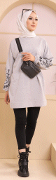 Tunique décontractée avec manches à motif fleurs pour femme (Tenue Hijab moderne) - Couleur gris clair - REF. 35298 (23.00 €)