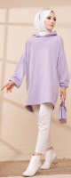 Sweat ample à capuche pour femme imprimé au dos "I am where are you?" (Tunique décontractée pour Hijab) - Couleur lilas - REF. 35815 (18.00 €)