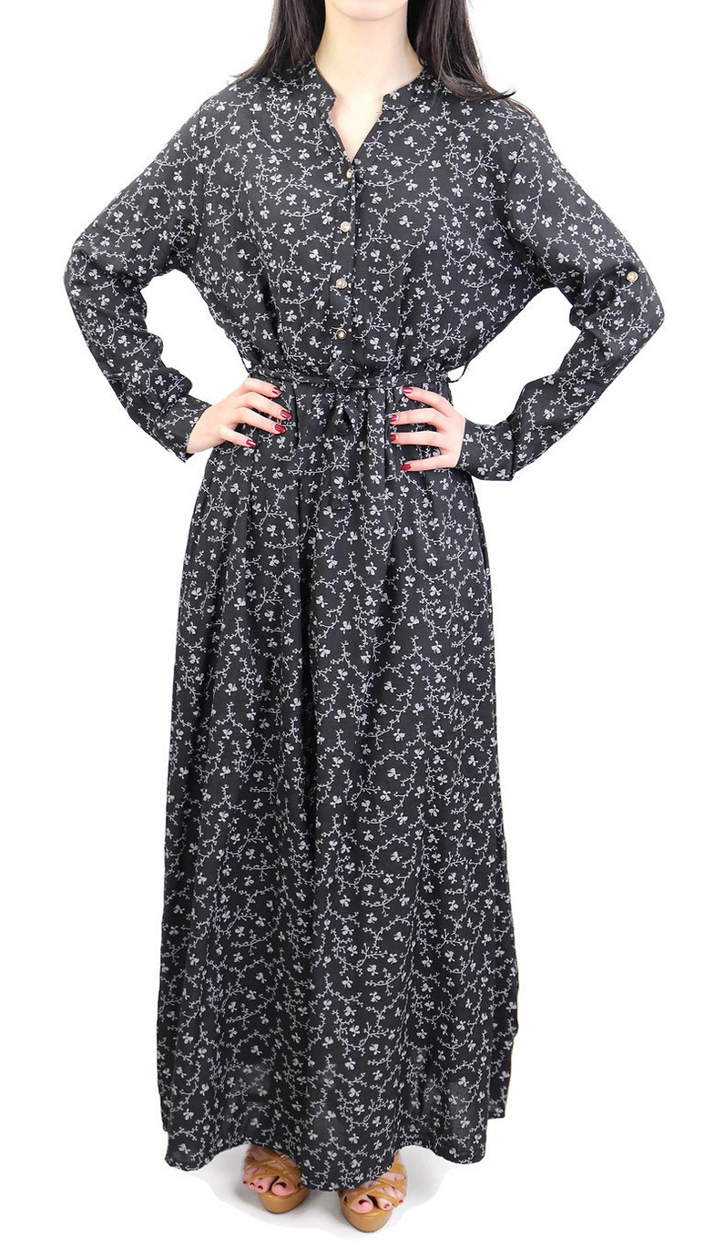 Misez sur cette longue robe avec coupe légèrement évasée et ceinture assortie (peut s'attacher par devant ou derrière) pour un look resplendissant.