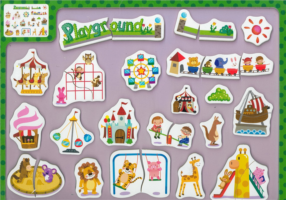 Tableau-puzzle en bois éducatif : Manège et Cours de récréation Jeu/Jouet