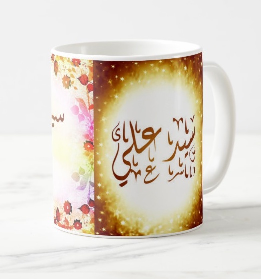 Mug avec le prénom Sidali calligraphié en arabe ainsi que son écriture normale en arabe (سيدعلي) et en français.