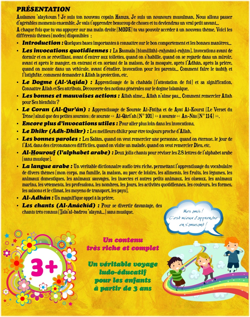 Un voyage passionnant dans le monde du savoir avec le nounours Hamza (plus de 112 pistes audio et une heure de sons !).
