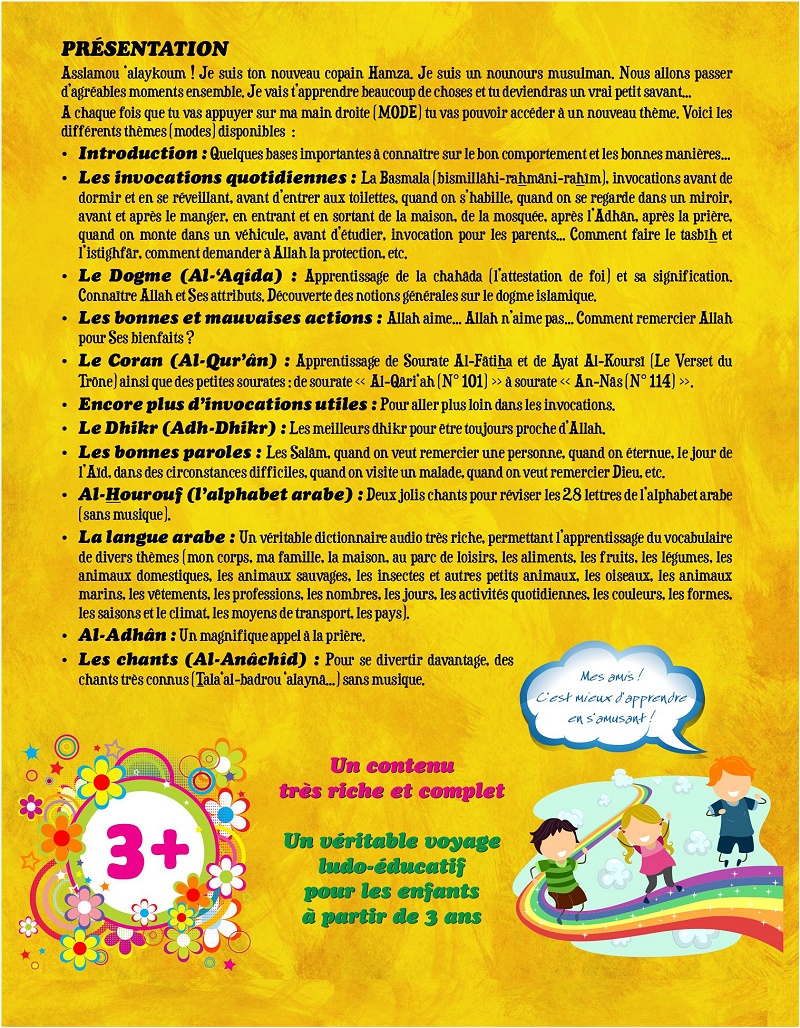 Un voyage passionnant dans le monde du savoir avec le nounours Hamza (plus de 112 pistes audio et une heure de sons !).