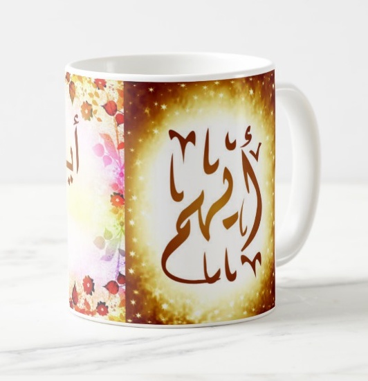 Voir l'ensemble des mugs dédiés au prénoms calligraphiés en arabe (Mugs prénoms arabes et musulmans féminins - Mugs prénoms français)