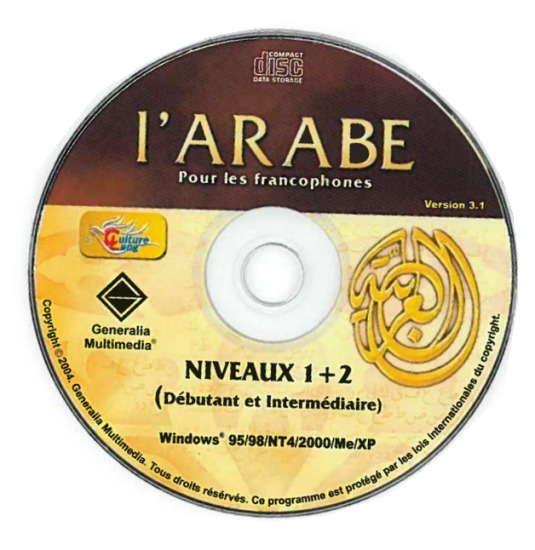 L'arabe pour les francophones (Niveaux débutant + intermédiaire) est une méthode de langue de référence qui était en vente en Fnac et dans toute la grande distribution (principalement en France, Belgique et Suisse). Deux niveaux sur le même cédérom : Niveaux Débutant + Intermédiaire, avec un total de 300 heures d'apprentissage ! Cependant ces logiciels ne sont compatibles qu'avec les anciennes versions de Windows telles que Windows 95 à XP.