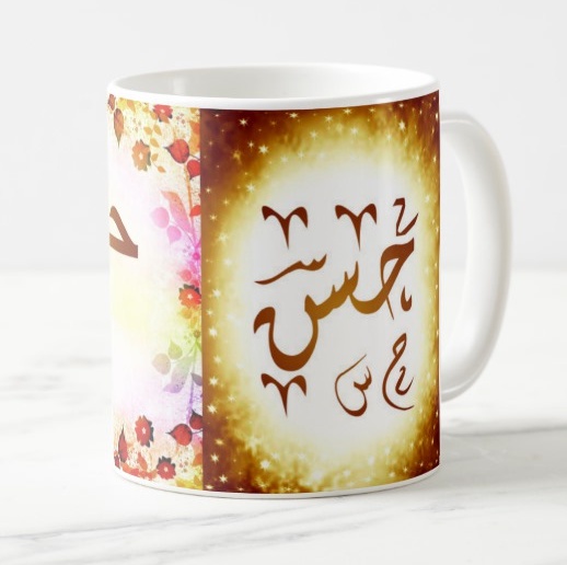 Voir l'ensemble des mugs dédiés au prénoms calligraphiés en arabe (Mugs prénoms arabes et musulmans féminins - Mugs prénoms français)