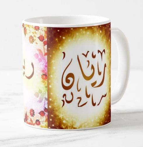 Voir l'ensemble des mugs dédiés au prénoms calligraphiés en arabe (Mugs prénoms arabes et musulmans féminins - Mugs prénoms français)