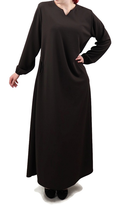 Robe tissu polaire avec ceinture (Vêtement Hijab Saison Automne-Hiver) - Couleur noir - REF. 35696 (26.90 €)