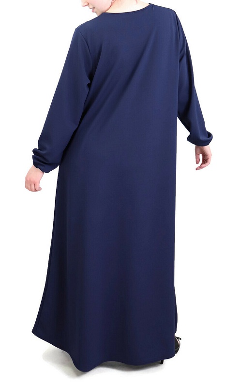 Nous vous proposons cette robe simple et confortable mais qui reste élégante. Elle vous garantit une sensation de bien-être et de confiance de par sa coupe longue et évasée sur les côtés.