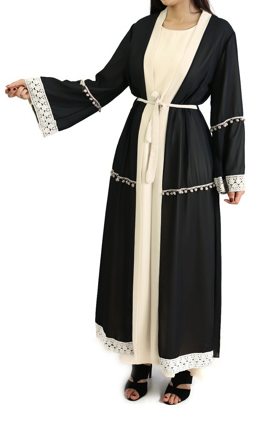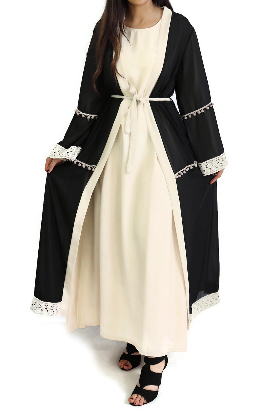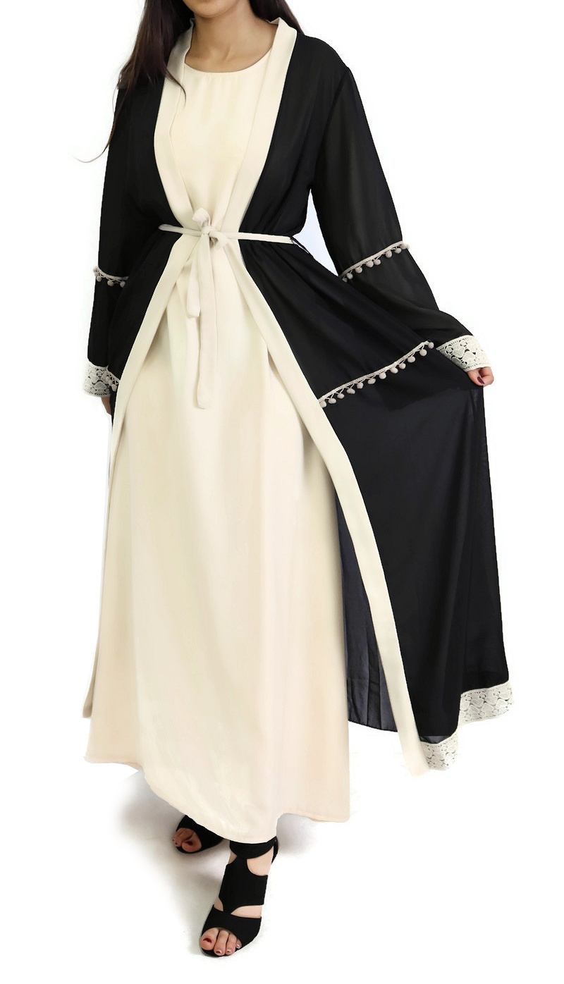Abaya noire et caramel avec foulard assorti - REF. 25270 (40.00 €)