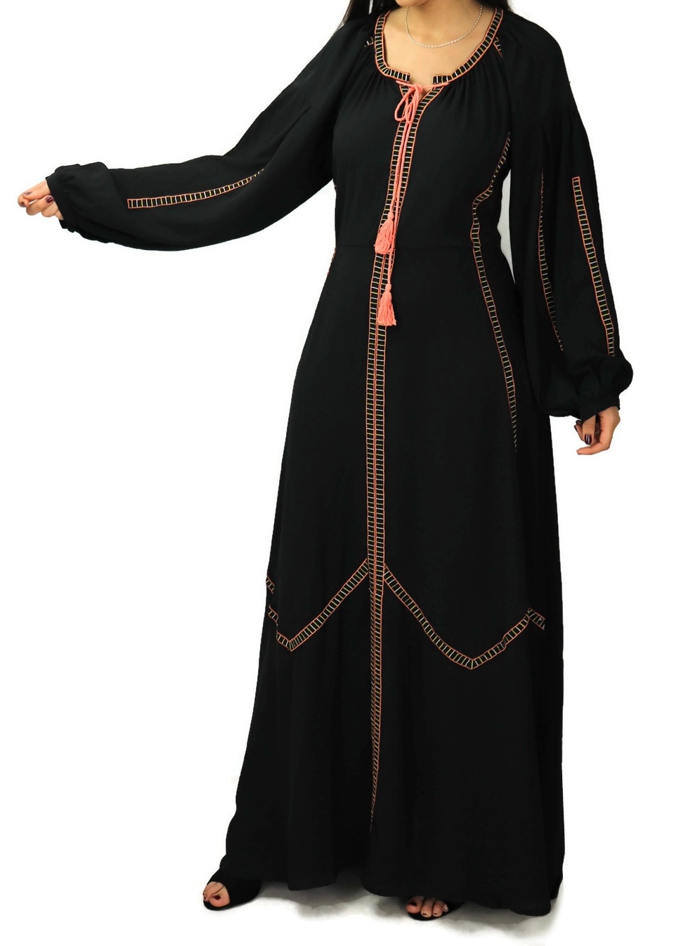 Choisissez cette robe longue avec ses broderies colorées et sa fluidité, elle mettra en valeur votre silhouette tout en vous assurant un look sobre et décontracté.