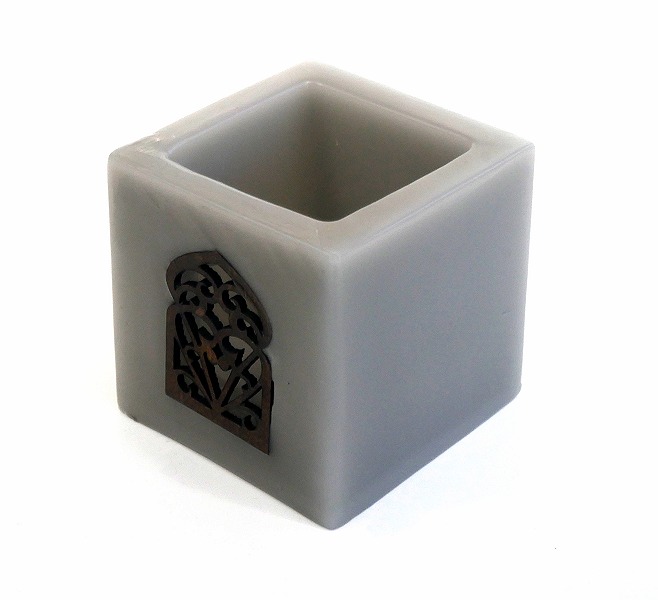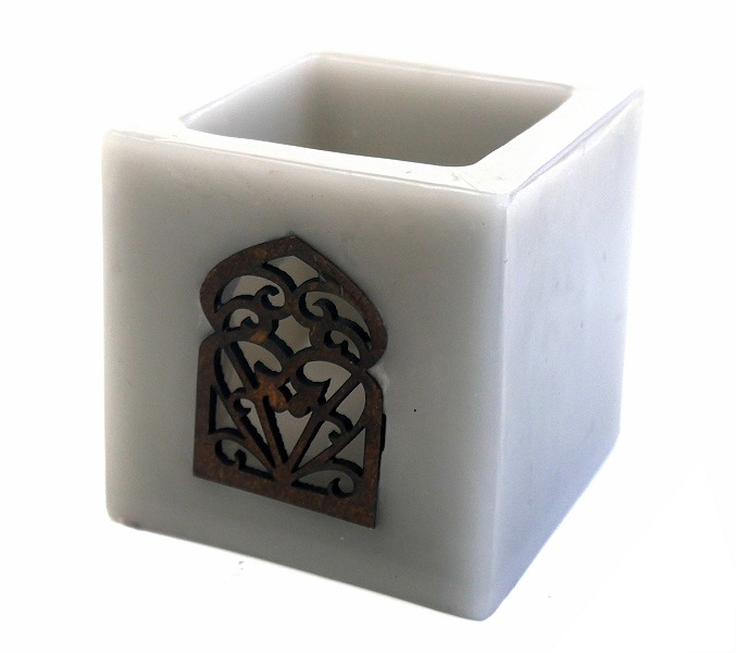 Photophore Marocain de forme cubique en cire orné d'un thème arabesque sous forme de porte pour créer une splendide ambiance. Glissez une bougie chauffe-plat, il diffusera une lumière douce et tamisée pour une ambiance orientale . Original par sa forme A poser sur votre table, sur une étagère ou sur les bords d'une piscine, baignoire ...