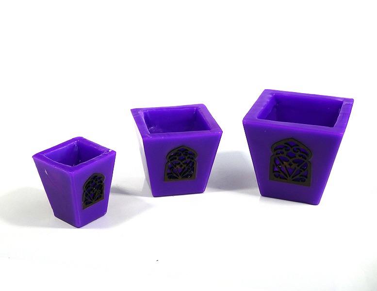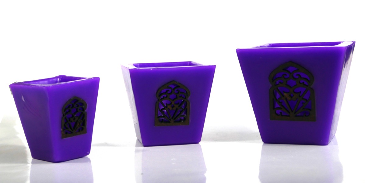 Ensemble de trois grands photophores de bougies décoratives de couleur violet - REF. 29463 (17.90 €)