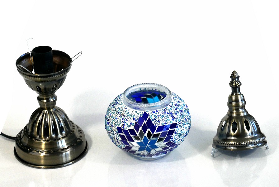 Ensemble de trois photophores bougie de décoration en provenance du Maroc de couleur bleu - REF. 29370 (14.90 €)