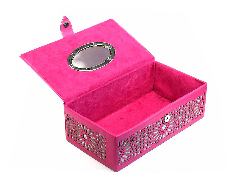 Boite a mouchoirs decorative en cuir de fabrication artisanale marocaine de couleur rose