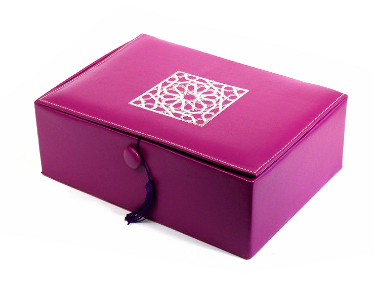 Très belle boite (Coffret) artisanal de luxe en cuir avec jolies motifs.