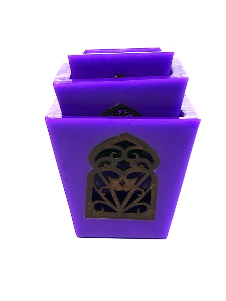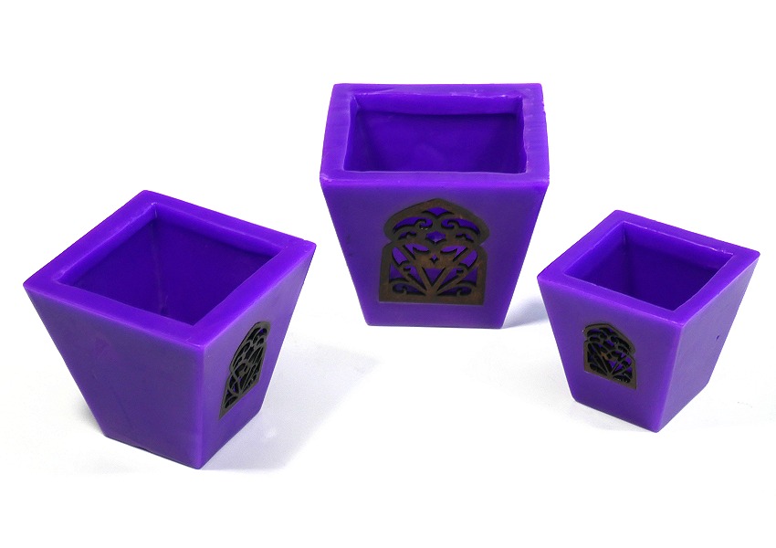 Ensemble de trois photophores de bougies décoratives du Maroc de couleur mauve - REF. 29368 (14.90 €)