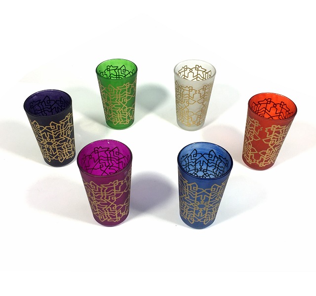 Verres a the marocain colores et ornes de motifs traditionnels dores (Pack de 6 verres)