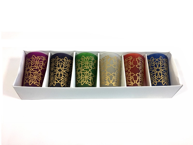 Verres à thé KHLALA colorés et ornés de motifs traditionnels dorés (Pack de 6 verres) - REF. 16005 (20.00 €)