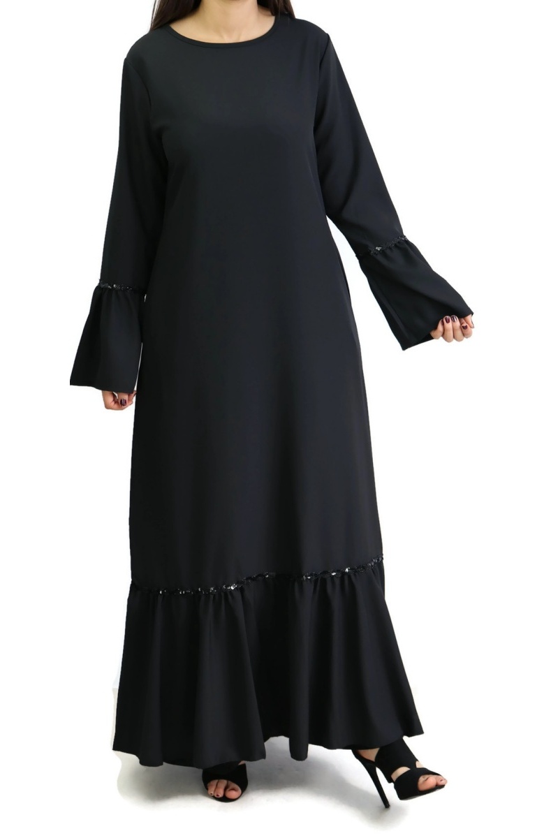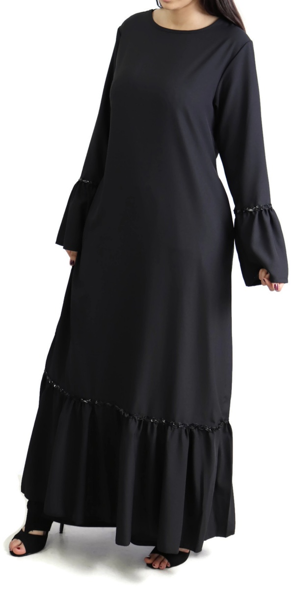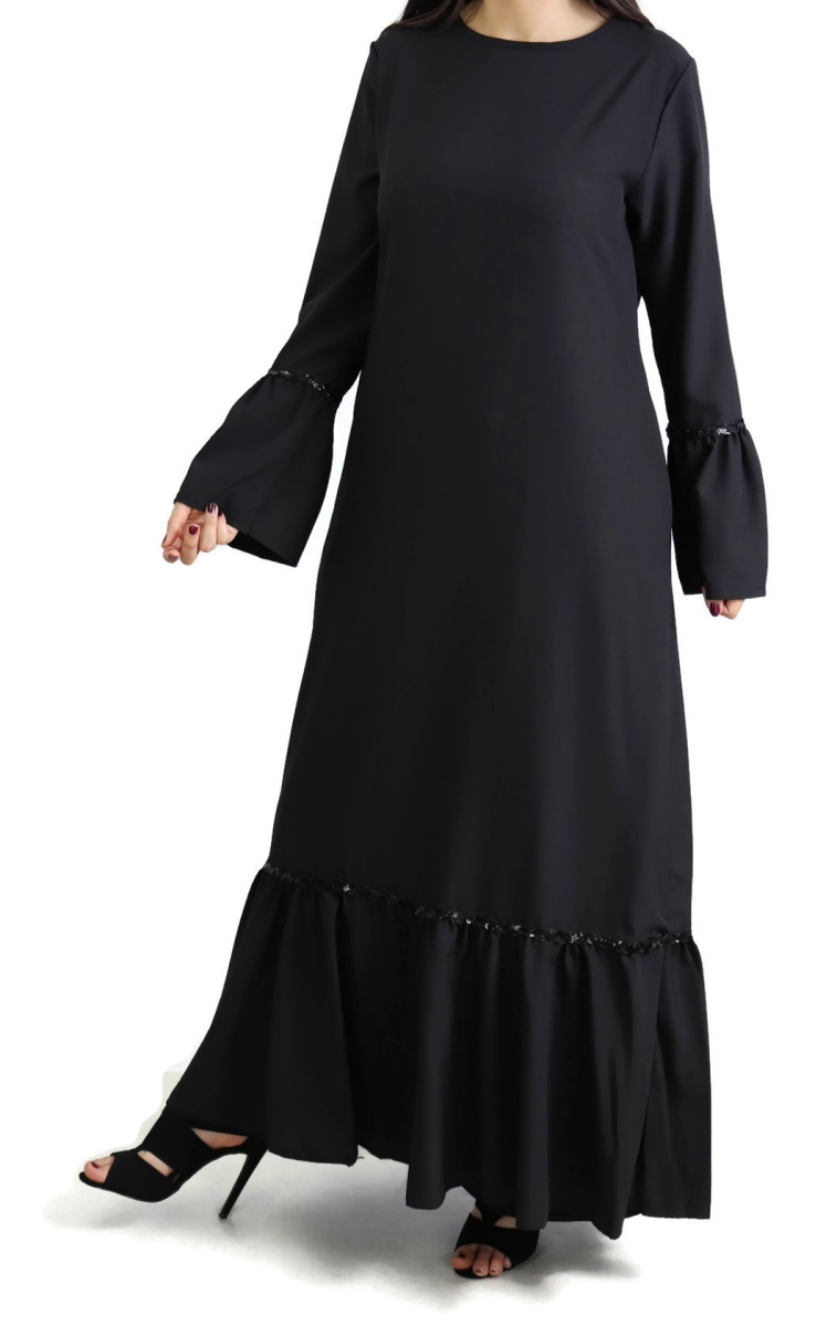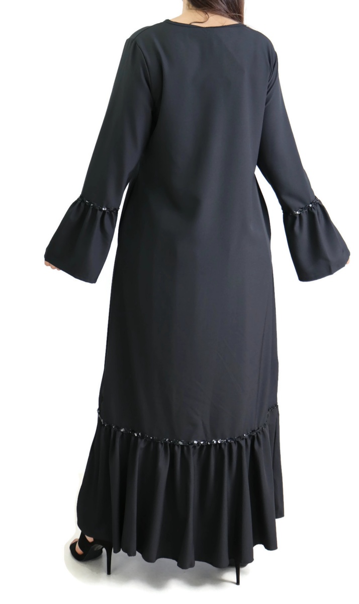 Robe longue à volants (Abaya chic Mode musulmane) - Couleur noir - REF. 33184 (24.90 €)